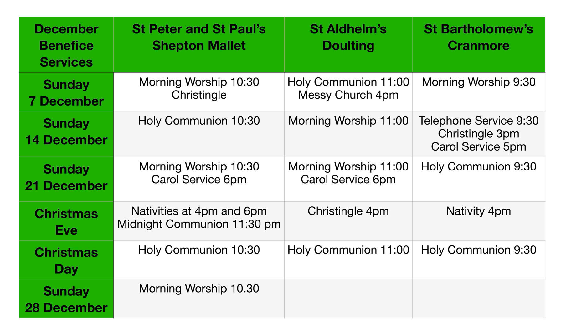 Our weekly service in Shepton Mallet is on Sunday mornings at 10:30 am in the Parish Church. To locate us precisely go here. Our village church services times are here